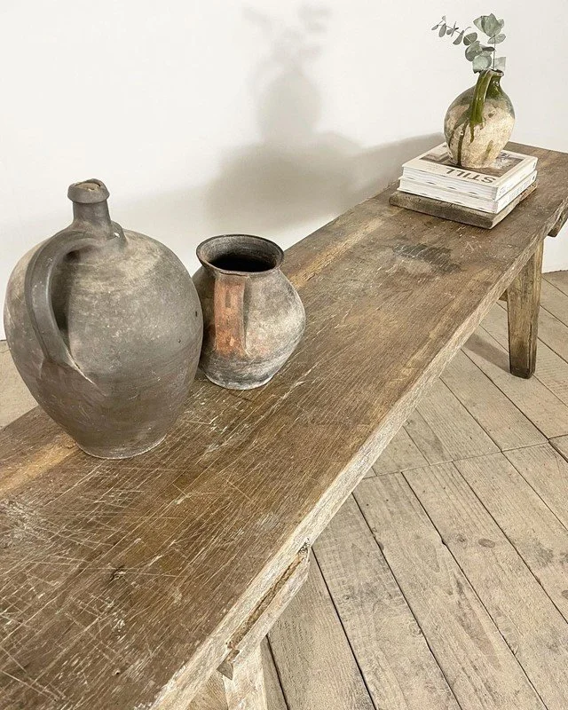 This antique workbench has a classic country farmhouse look and is made of oak so is very heavy